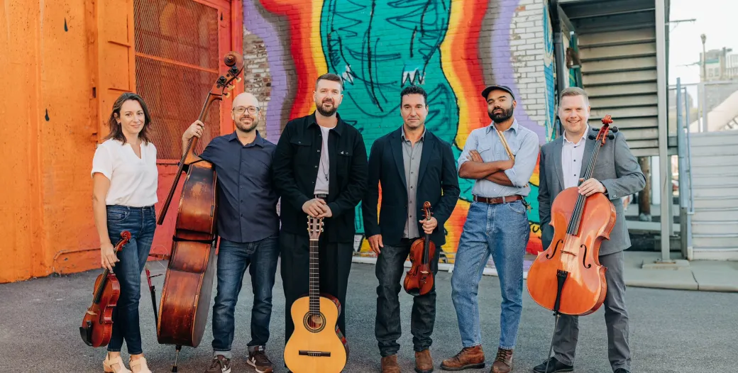 Combining three members of the world-class St. Louis Symphony Orchestra and three of the St. Louis region’s finest jazz musicians, The 442s are a genre-defying acoustic sextet named for the modern standard tuning of 442 Hz! Brought together by the innovative and inspired compositions of Adam Maness, who plays piano, guitar, accordion, melodica, and glockenspiel in the group, The 442s features Shawn Weil on violin, Shannon Williams on viola, Bjorn Ranheim on cello, Bob DeBoo on bass and Kaleb Kirby on drums. Formed in 2012, this unique ensemble blends virtuosic musicianship, group singing, and inventive improvisation, all while breaking down barriers between jazz, classical, folk, and pop music.